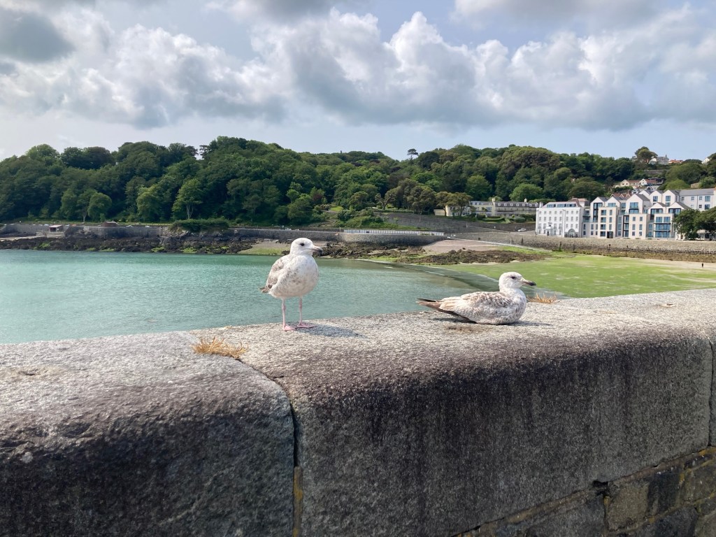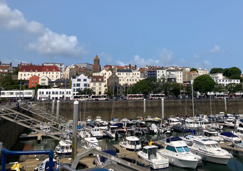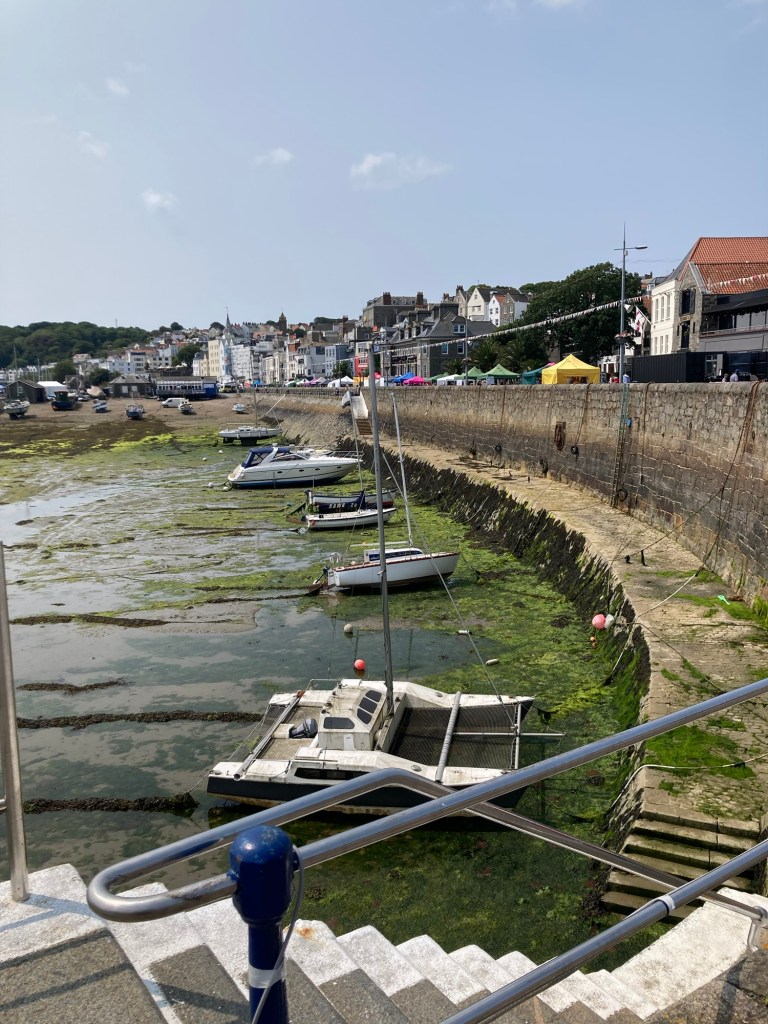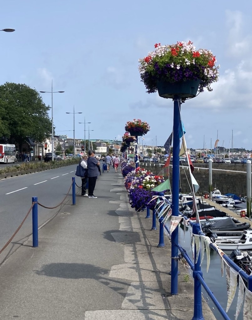 If I had blogged yesterday, this would have been entitled gray and gusty Guernsey. Happily, today is a different story and just in time for their bimonthly summer themed seafront festival. The theme for today’s event was art, so lots of craft booths as well as music and food trucks or tents.