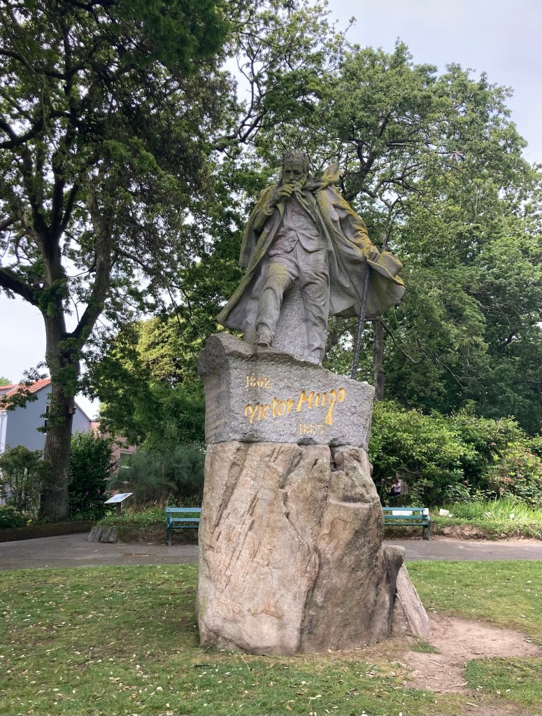 The Victor Hugo statue is in the gardens in front of the Guernsey Museum and Art Galkery in the Candie Gardens.