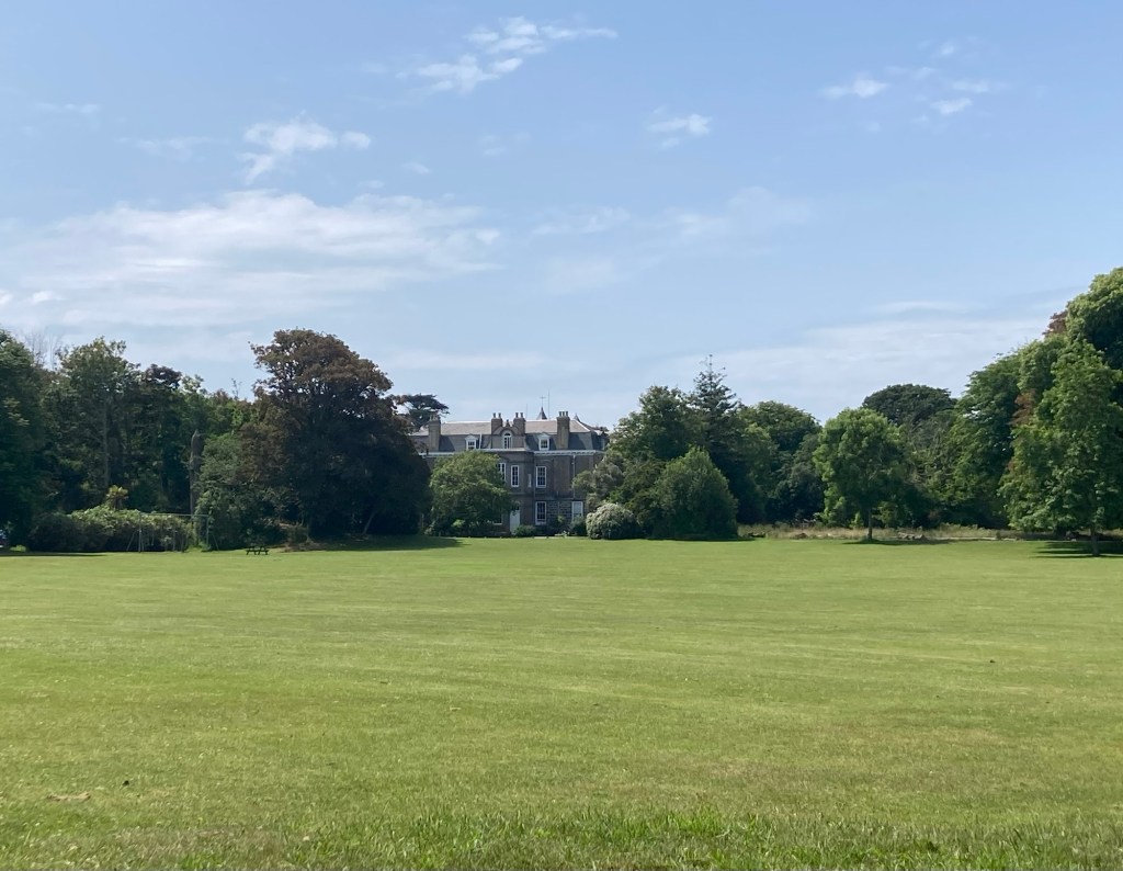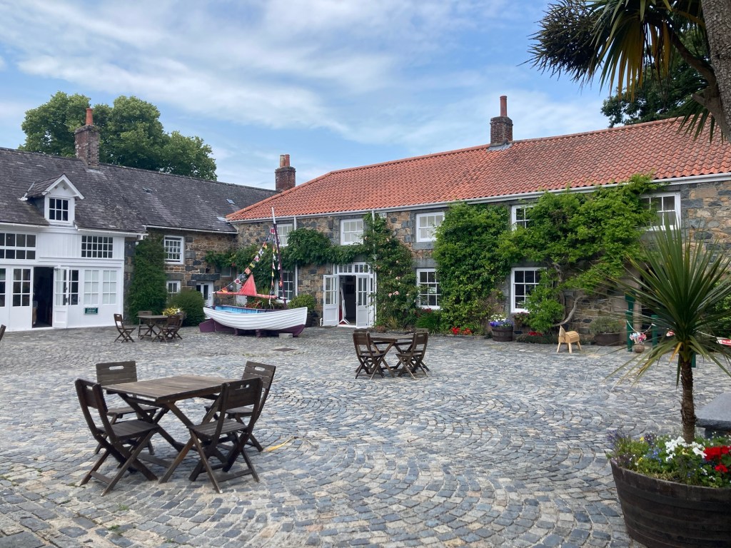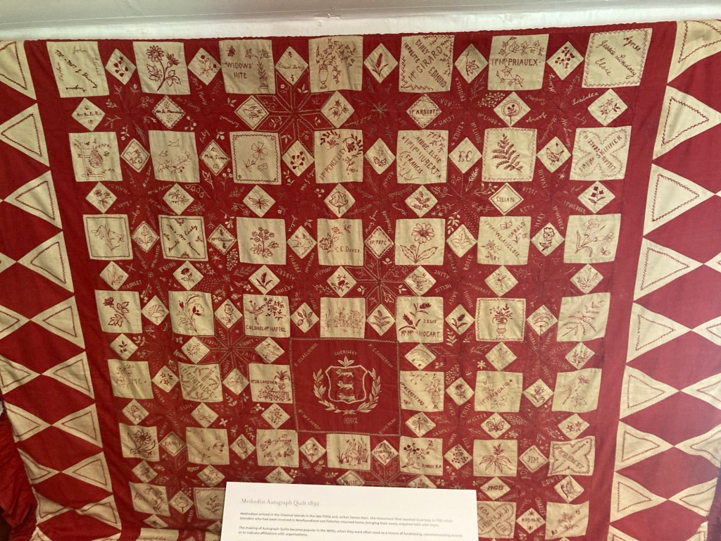 Today, we headed west from the house for almost an hour’s walk to the Folk and Costume Museum in Saumarez Park. This route also took us by Waitrose, our favorite grocery store here just due to size, as well as some attractive hotels and homes.