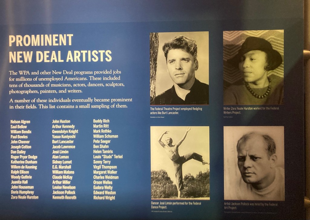 FDR fought to bring American out of the Great Depression by putting Americans to work. That included the Works Progress Administration (WPA), the Civilian Conservation Corps (CCC), along with other programs, and even artists.