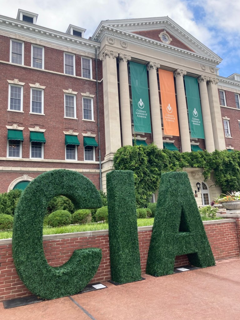 After the bridge,we picked up dinner from a local grocery store to take back to our room and then headed across the street to the Culinary Institute of America for our 2:30 tasting and tour. We have visited their two campuses in California, but this is the original and has trained many of the famous chefs in America— Anthony Bourdain, Amanda Siegfried, Geoffrey Zakarian, Cat Cora, Rocco DiSpirito, etc,