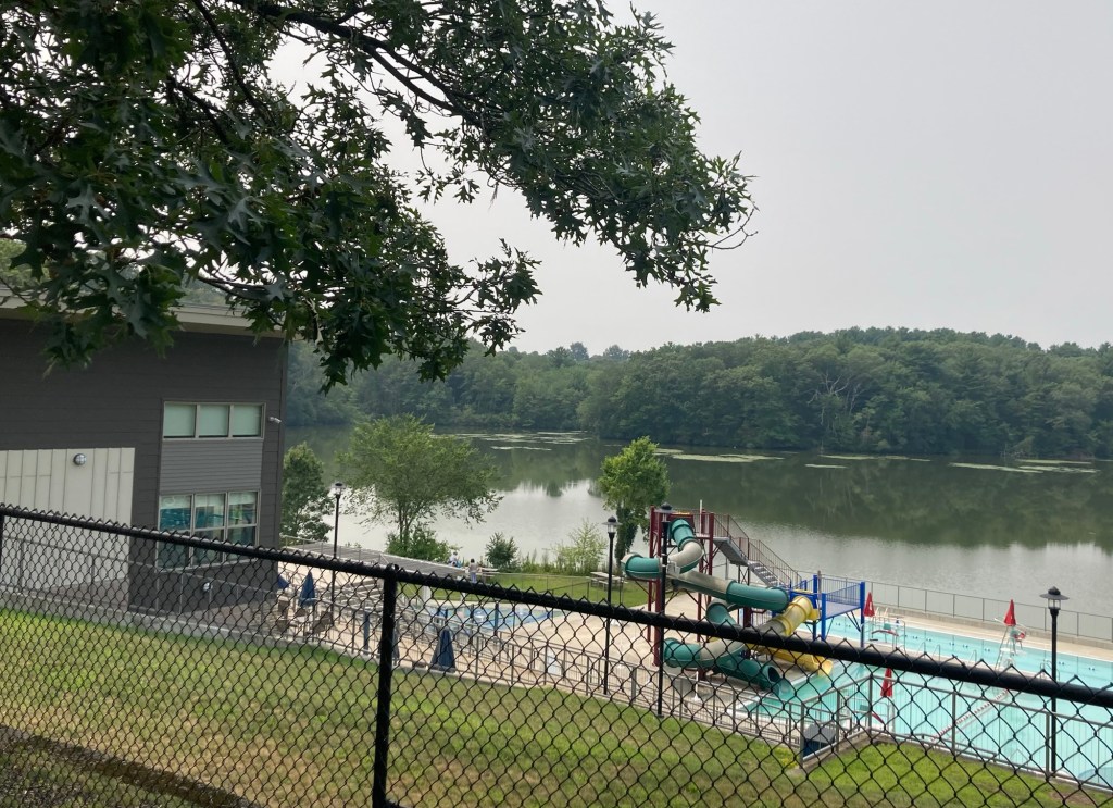 Yesterday, after a run, Zeus’ morning walk, and a grocery fill-up at Trader Joe’s, Bob and I walked 1.4 miles to the Needham Free Public Library. On the way, we passed an impressive athletic complex near Rosemary Lake.