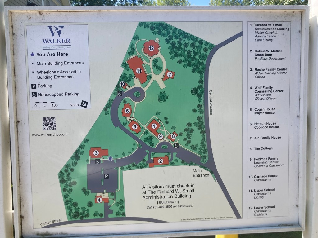 So, Apple Maps walking route, which continued on Central Avenue even after the sidewalks disappeared, brought me to the Walker School property. This is not where I wanted to be, but the map seemed to indicate I had arrived at the peninsula.