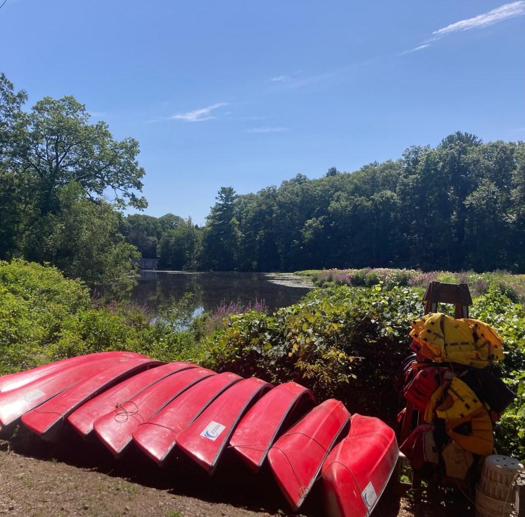 Success!You can see part of the bend in the RiverCanoes for rent The colorful field on the peninsula A map of the trails on the peninsulaThe mowed pathThe boulder noted on the mapSome signage about the ecological efforts on the peninsula Close up of some of the plants Colorful plants near and on the River