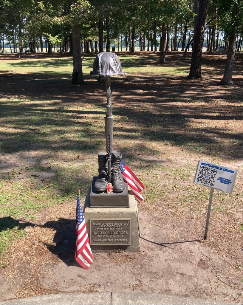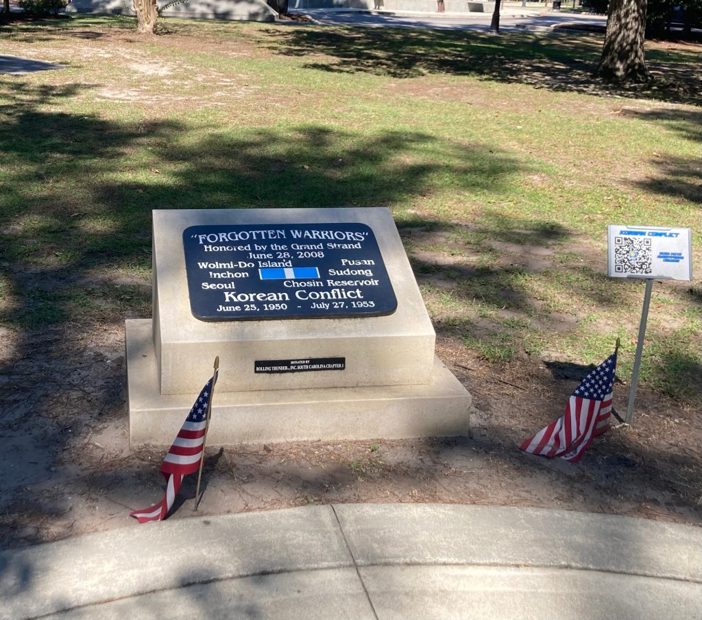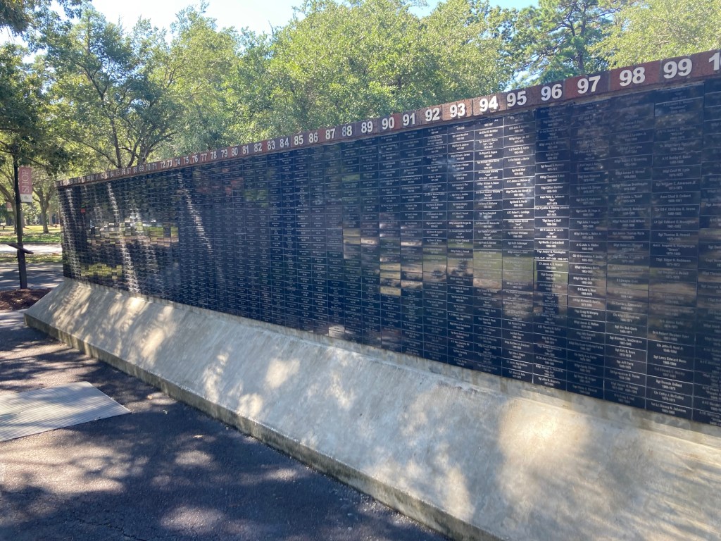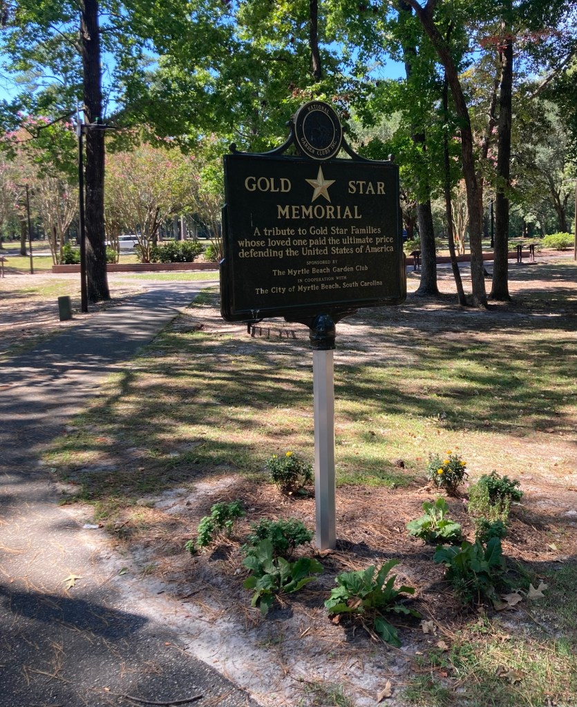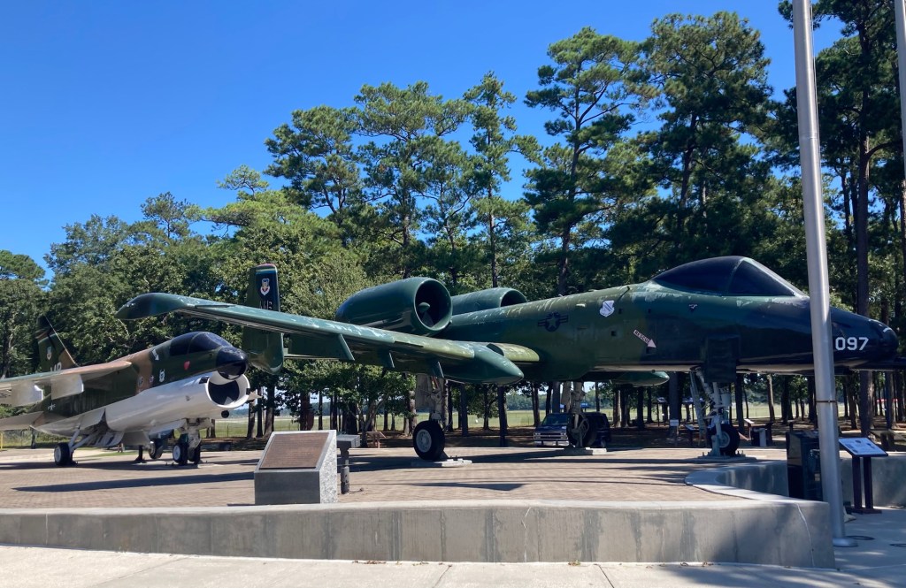 The street signage for the parkWalking up to the 9/11 MemorialA section of beam from the World Trade Center North TowerA F-1000 Super Sabre, used by the 354th Tactical Fighter wing for conflicts in the late 1950s and ‘60sLTV A-7 Corsair II, with inflight refueling and bombing capabilities, was adopted for use by the Air Force in the late 1960sFairchild A-10 Thunderbolt II, described as a tank killer, was first produced in 1975One of two parking spots reserved for those injured in combatThis is a display of the tradition of military aircraft nose art dating back to WWIIOne side of the Wall of RemembranceMemorial for the Korean WarMemorial for Prisoners of WarBattlefield Cross for fallen soldiers Walking up to the WWII Memorial A front view of the WWII Memorial The middle back section of the memorial A tribute to all Armed ForcesA tribute to families whose child has died in the Armed Forces while defending the USMemorial to Revolutionary War Patriots The view of the Myrtle Beach International Airport from the park