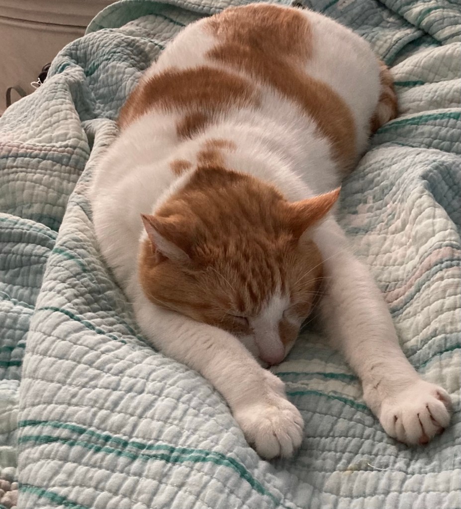 Otherwise, we spent most of the weekend watching various sports teams for college and professional American football and college volleyball. There were some good games, some of which went our way and some of which did not. Sunday it stormed here, so it felt like we had a good excuse to be inside. We also had Squeegee to entertain us. He’s not terribly active but very sweet, and he curls up in the cutest and/or funniest poses.