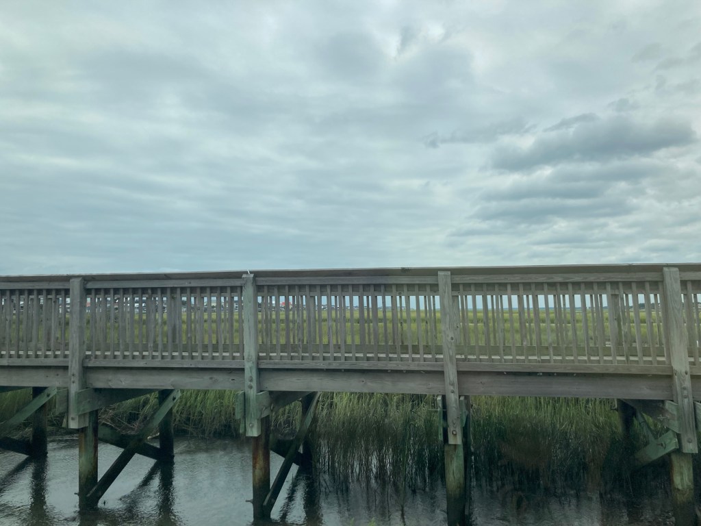 While Hurricane Gabrielle is headed away from the coast, it is stirring up the waves, so a red flag advisory was posted.The beach isn’t too far from the airport, so we saw a number of planes coming in while we were there.The Atlantic Ocean, beach, and some of the protective dunes that parallel the shore.Walking out onto the pier. No charge to walk on it, but you do have to pay to fish.These chairs are everywhere. I finally decided to do the photo.Looking north towards downtown Myrtle BeachLots of people out fishing and/or enjoying the viewLooking south towards Surfside Beach from under the pavilion at the end of the pierAnd north from same location Looking back towards the beach and park areaA side view of the pierThe surf and tiny birds on the beachA picnic area near the camping section Walking north on the boardwalk And heading back southAnother view of beach and pierAn inletHeading out on the nature trailsA boardwalk in the woodsGood trail signage The trail map showed this as a pond. This is what we saw, although there may be more water present at high tide.
