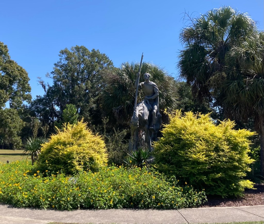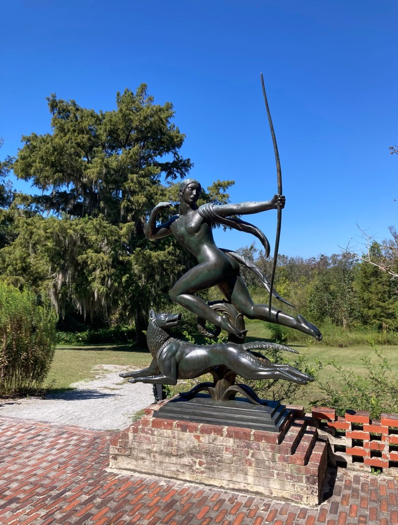 The entry off the highway into the parkThe sculpture “Youth Taming the Wild” as you enter into the actual gardensA house built in 1998 in collaboration with “Southern Living” magazine to help promote the park“Moondance” by Richard Hallier, 1944Interesting bit of history in the main parking lot where we parked for most of our visit The conservatory that is under construction “The Visionaries” sculpture to honor Arthur and Anna Huntington One of the most colorful gardens at Brookgreen. The sculpture is “Samson and the Lion” by Glen Derujinsky, 1949.“Orpheus and Eurydice” by Nathaniel Choate, 1952A fountain and one of many sculptures of the goddess Diana. This one was done in 1893 by Augustus Saint-Gaudens.“Neptune” by Wheeler Williams, 1939Live Oak tree with Spanish moss“Pegasus” by Laura Gardin Fraser, 1946-1954. It is the largest sculpture at Brookgreen.“Man Carving His Own Destiny “ by Albin Polasek, 1961.“Dionysus” by Edward McCartan, 1936“Diana” by Paul Manship, 1924“Fall of France” by George DemetriosThe sculpture in the fountain is “Riders of the Dawn” by Adolph Alexander Weinman“The Young Diana” by Anna Hyatt Huntington, 1924Loved the Spanish moss and the turtles“The Saint James Triad” by Richard McDermott Miller, 1997“Don Quixote” by Anna Hyatt Huntington, 1947“Sancho Panza” by Carl Paul Jennewein, 1971