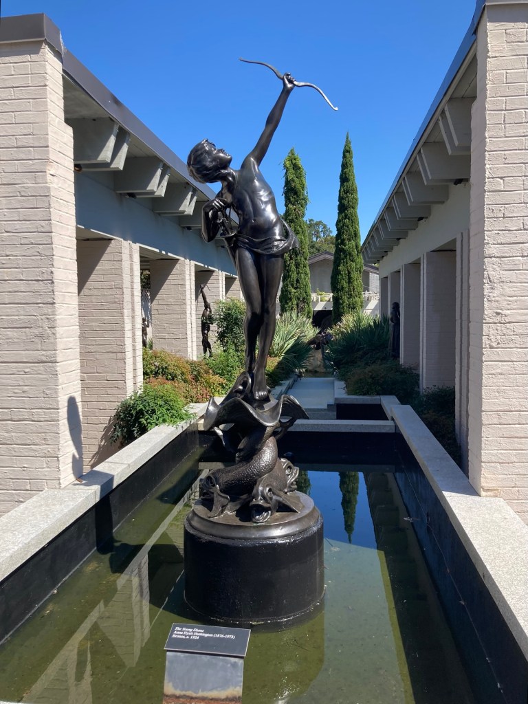 “Resting Dancer,” by Harold Langland, bronze, 2000.“Raphell,” by Bruno Lucchesi, bronze, 1983“Joy of Motherhood,” by Willard Newman Hirsh, bronze.“Phryne Before the Judges,” by Albert Walter Wein, limestone, 1948