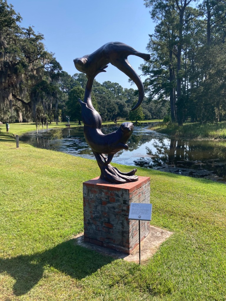 They have succeeded. Brookgreen Gardens was recently named one of the Top 10 Botanical Gardens in America, and the gardens contain the largest and most comprehensive collection of American figurative sculpture in the country with over 2,700 works by 425 artists. There are other gardens with perhaps more colorful and abundant flowers, but the sculptures, gardens, ponds, and wide-spreading live oak trees with Spanish moss, definitely make this a Top 10 site. And we haven’t even visited the Lowcountry grounds and zoo or any of the inside galleries. More to come.