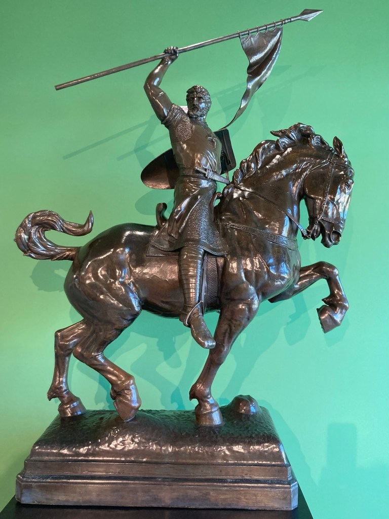 A portrait of Anna Hyatt Huntington, the matriarch and original sculptor on this land. “El Cid Campeador” by Anna Hyatt Huntington, 1927.“Torso” by Madeleine Lord, welded steel, $4,200.“Atoned, Bateleur Eagle,” by Richard Burke, walnut wood, $9,390.“Moonshadow,” by Roger Martin, bronze, $6,200.“Interlude,” by Roderick Morgan, bronze, not for sale.“Eidolon X,” by Brendan Johnston, Norwegian rose marble, not for sale