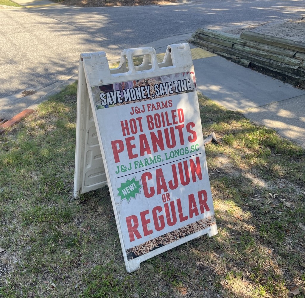 without seeing signs for boiled peanuts.