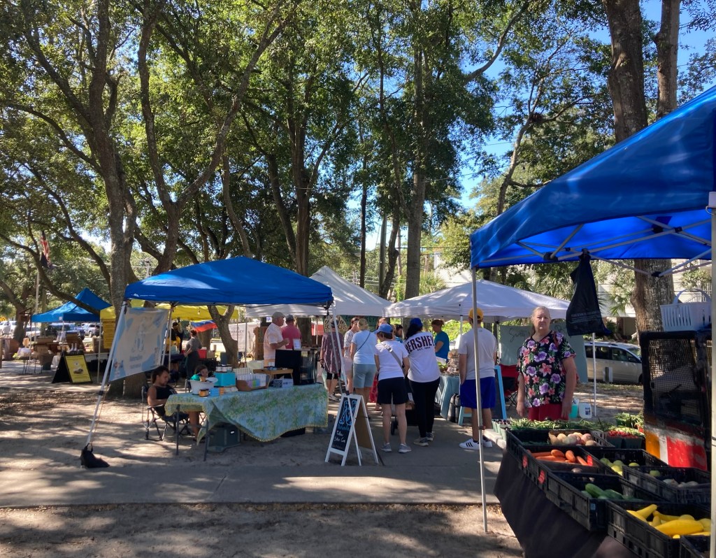 Bob and I had stopped at a Visitors Center on our way to our housesit and picked up some information on the area. Some of this included local events like farmers markets, art shows, etc. Today, we drove 6 miles to the community of Surfside Beach for their weekly Farmers Market.