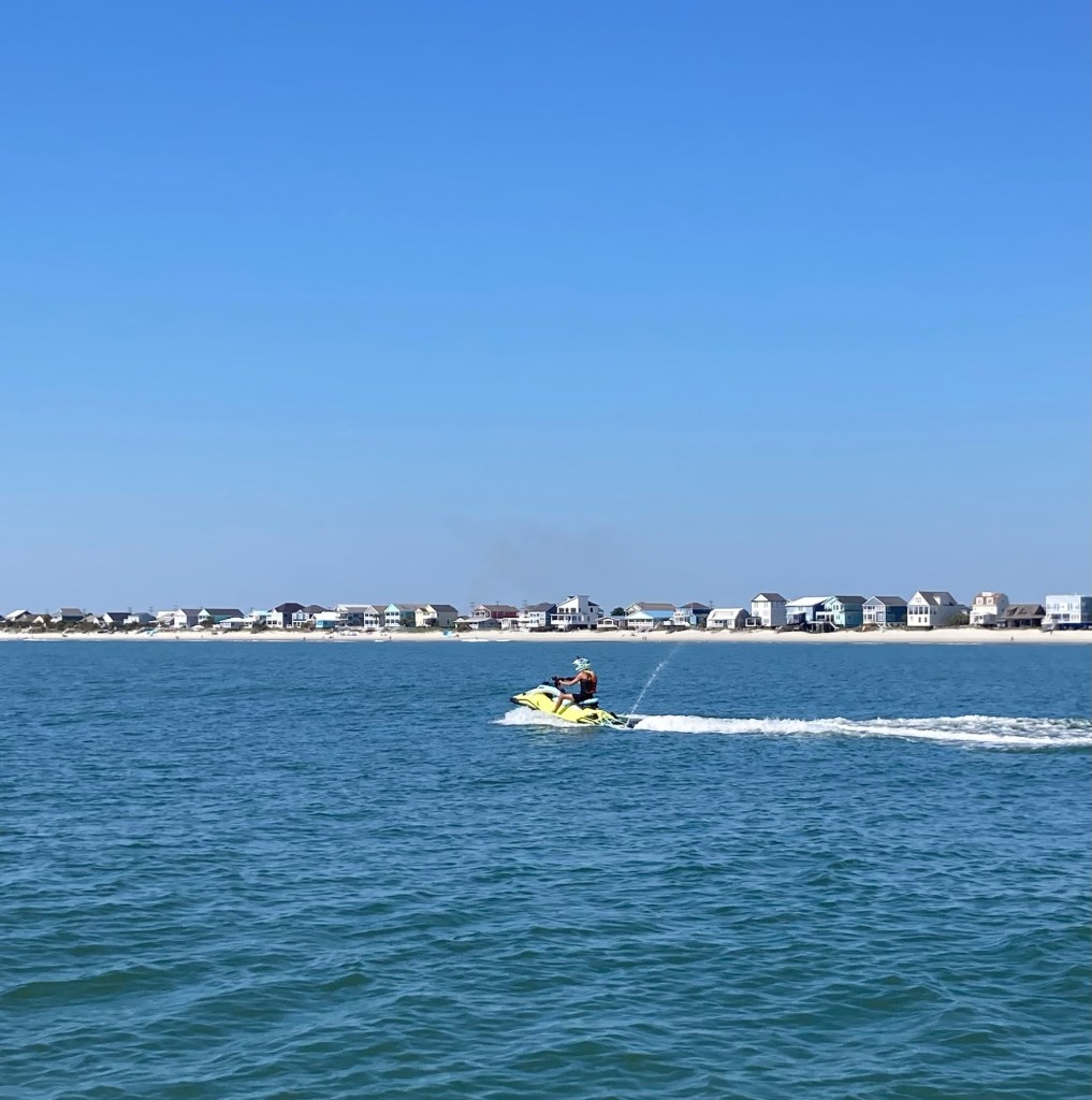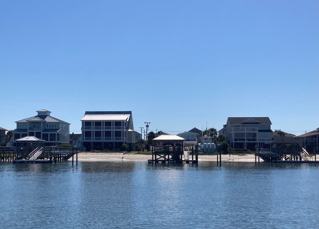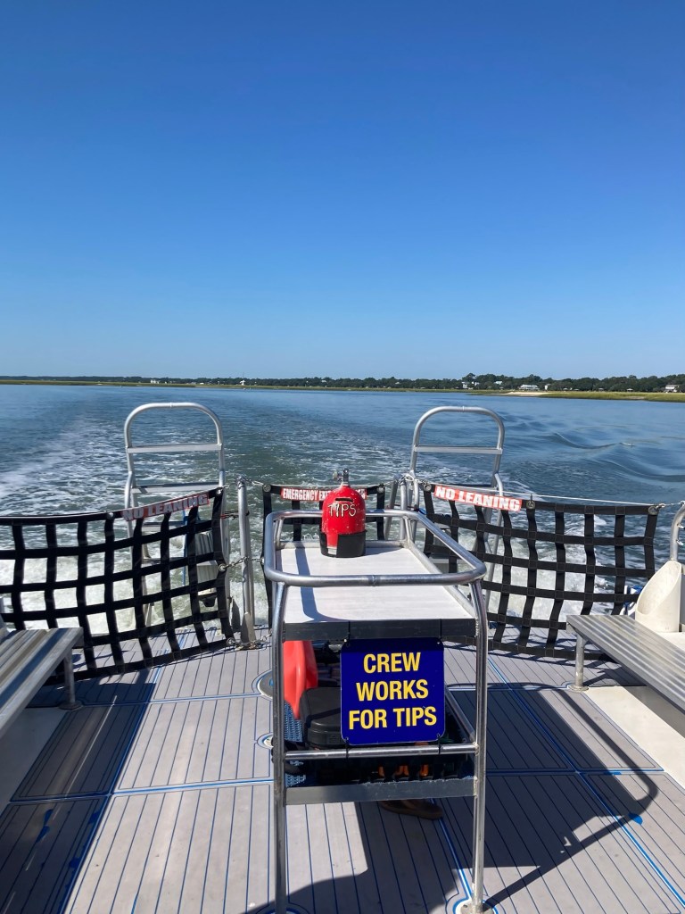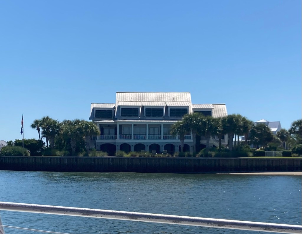 We did get lots of good pics of Murrells Inlet (the actual inlet not the town) as we sailed through that into the Atlantic Ocean. We also got a good view of much of the Grand Strand of beaches and the many large, lovely beach homes built along the coast. All of these multi-million dollar homes are required to have hurricane insurance, and that insurance does not cover anything on the ground level. You’ll see that most of the houses are built on stilts, but that still leaves the garage and its contents uncovered.