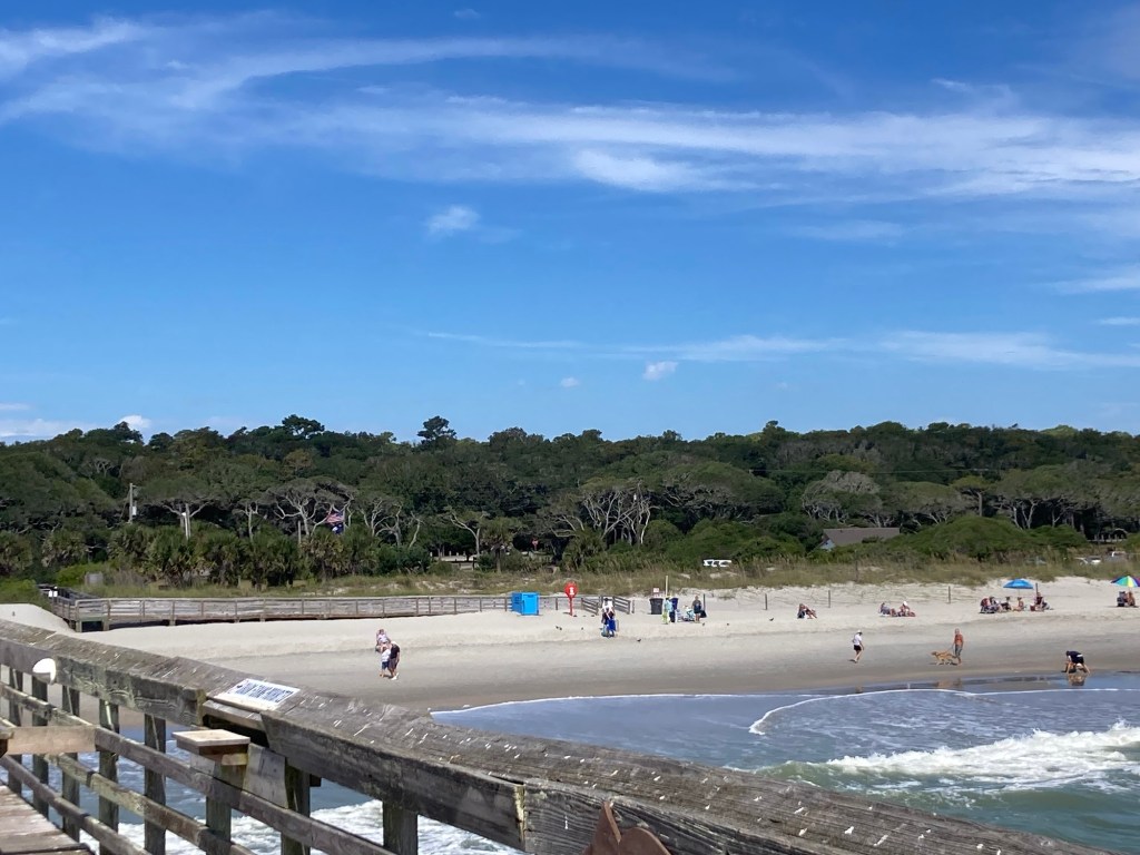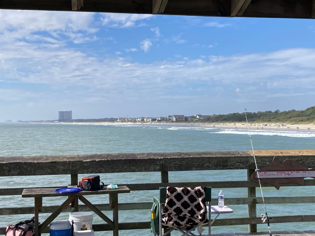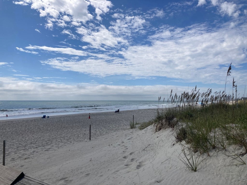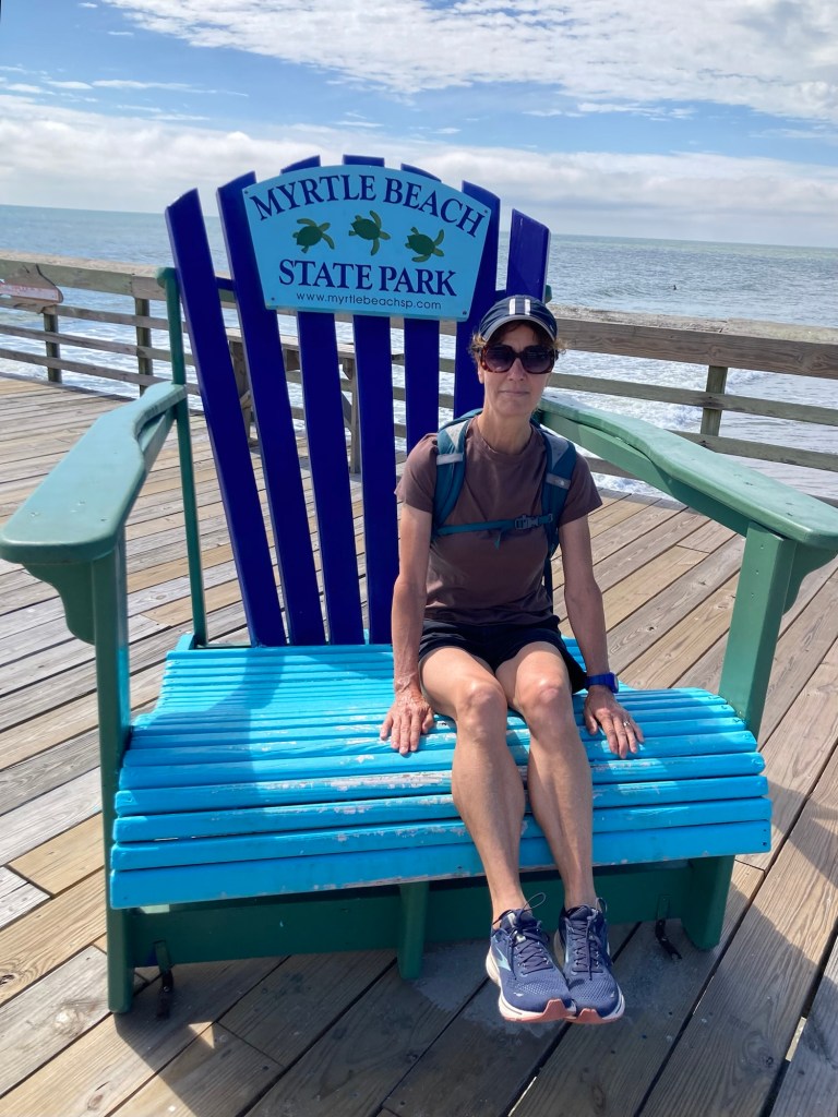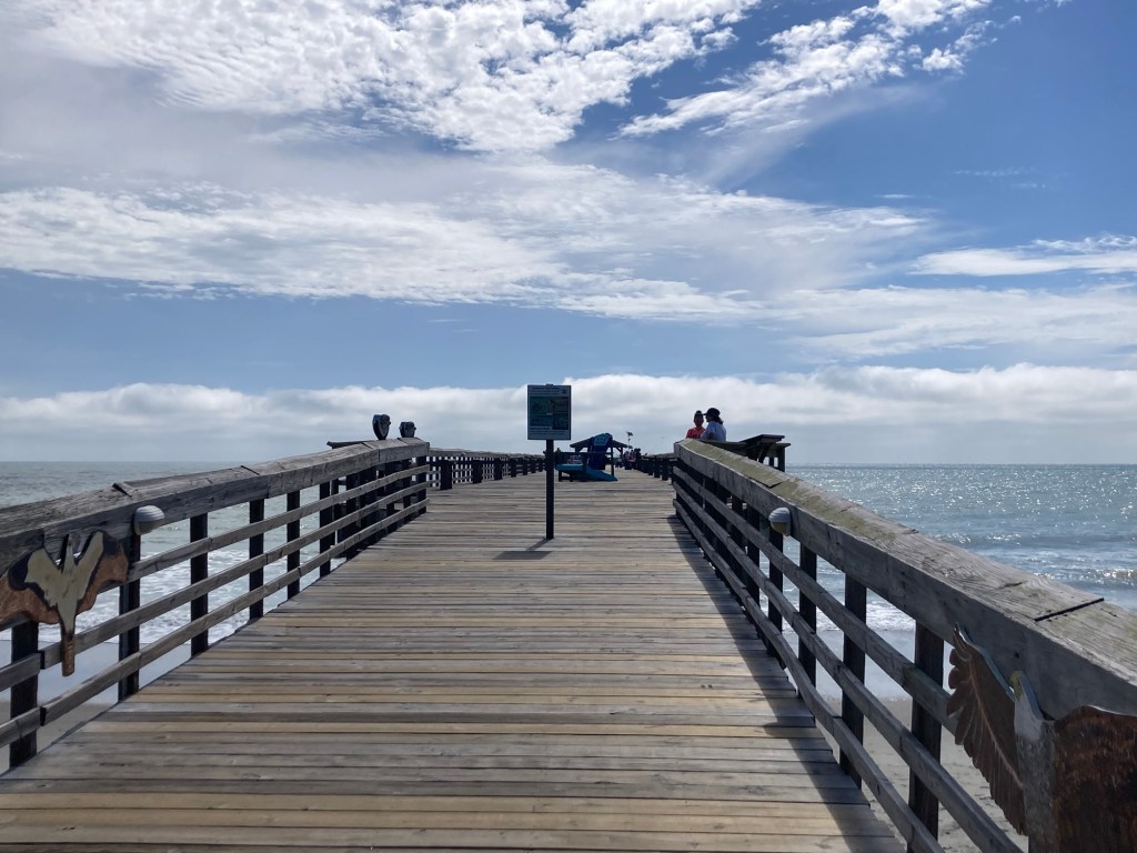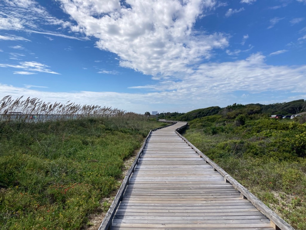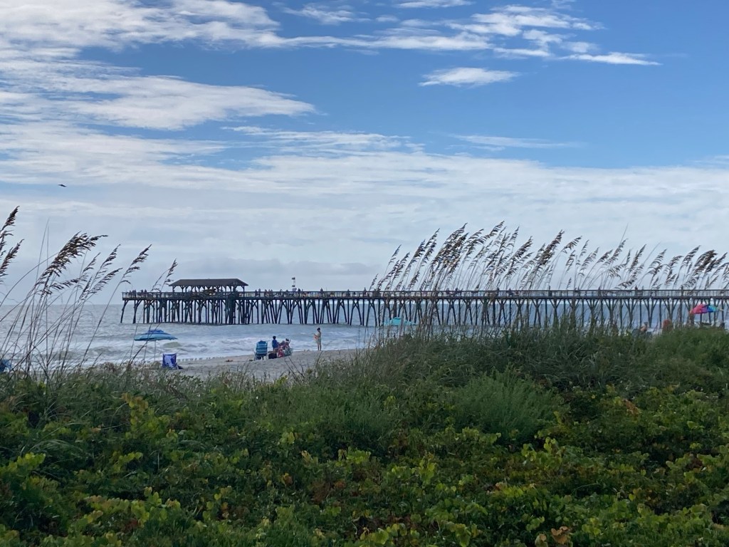 The state park lies along part of the Grand Strand along the Atlantic Ocean between the city of Myrtle Beach to the north and Surfside Beach to the south. It opened in 1936, and is one of 16 South Carolina State Parks built by the Civilian Conservation Corps. It has a fishing pier, over 300 tent and campsites, 1 mile of undeveloped beach, and a couple of nature trails. We walked down the fishing pier, along part of the beach, on the boardwalk that parallels the beach, and on the nature trails. With the temp in the low 80s and a nice breeze, it was a great day for an outing.