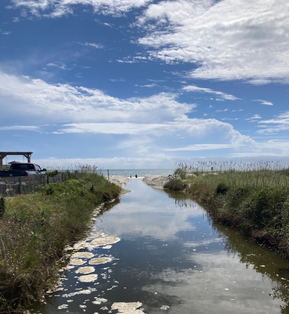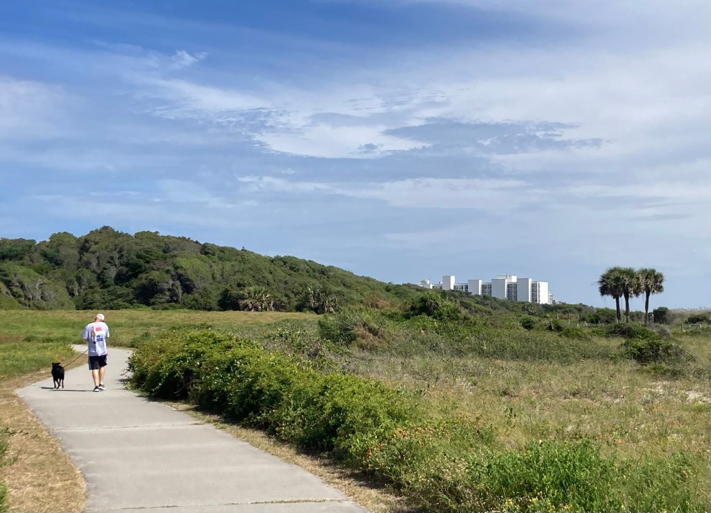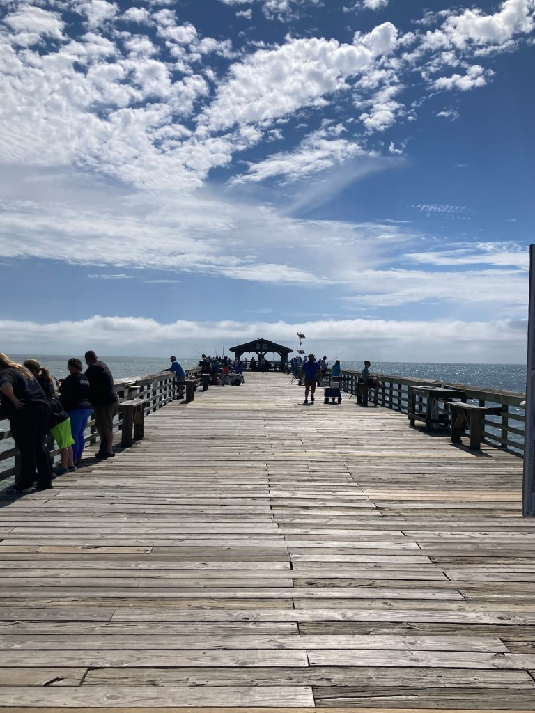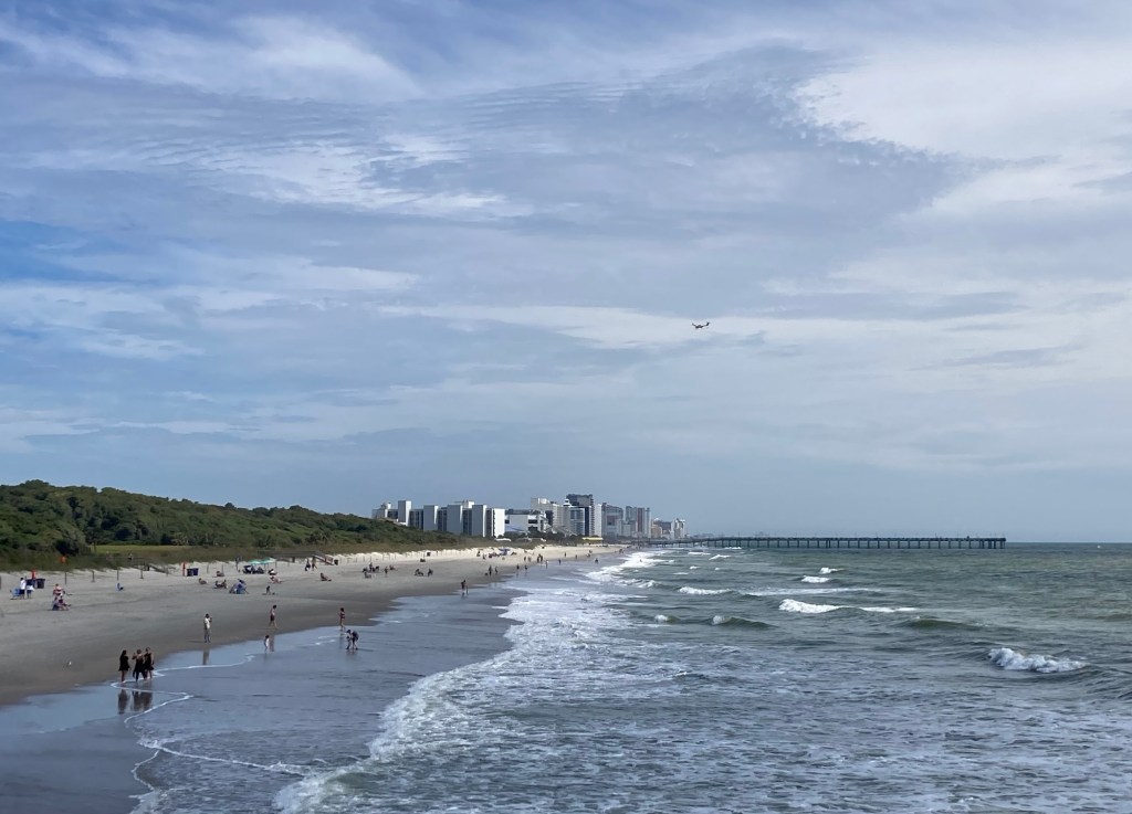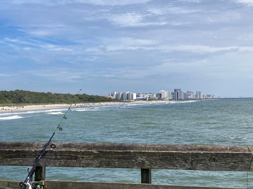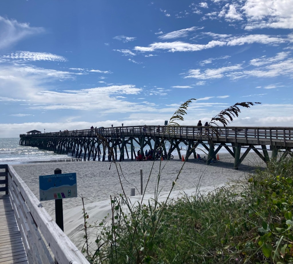 The state park lies along part of the Grand Strand along the Atlantic Ocean between the city of Myrtle Beach to the north and Surfside Beach to the south. It opened in 1936, and is one of 16 South Carolina State Parks built by the Civilian Conservation Corps. It has a fishing pier, over 300 tent and campsites, 1 mile of undeveloped beach, and a couple of nature trails. We walked down the fishing pier, along part of the beach, on the boardwalk that parallels the beach, and on the nature trails. With the temp in the low 80s and a nice breeze, it was a great day for an outing.
