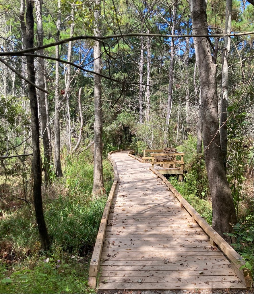 Today, Bob and I drove about 9 miles northeast of the house to Myrtle Beach State Park. Our homeowners kindly left us their pass to use at the two local state parks. We visited Huntington Beach State Park on our first excursion of the housesit. We delayed going to Myrtle Beach State Park until after the end of the big tourist season, but even today it had a lot of visitors.