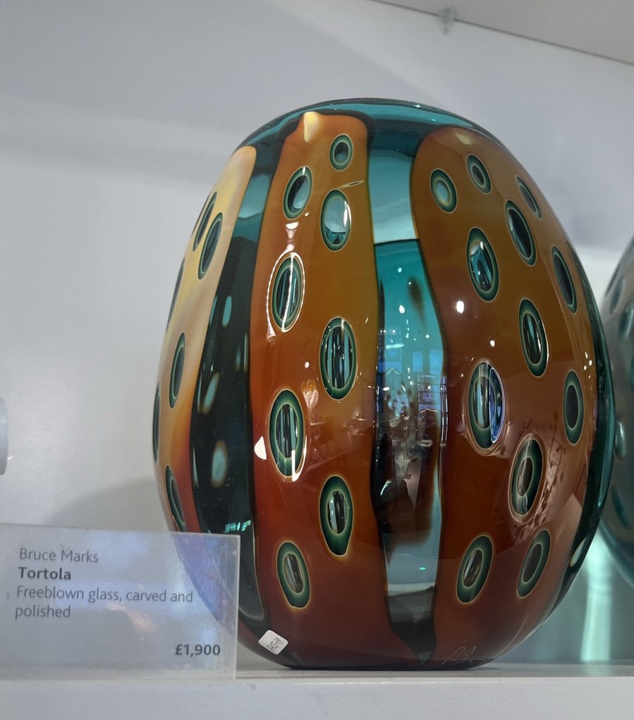 Based on Peter and Susan’s recommendation, we stopped by the gallery today, which has the London Glass Blowing Studio in the back. (Fun note: If you’ve ever watched the series “Blown Away,” Elliot Walmer, a glass blower from this gallery, won the second year of that series.)