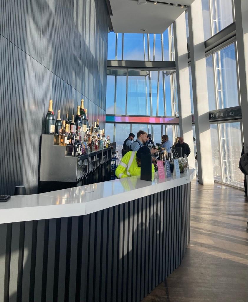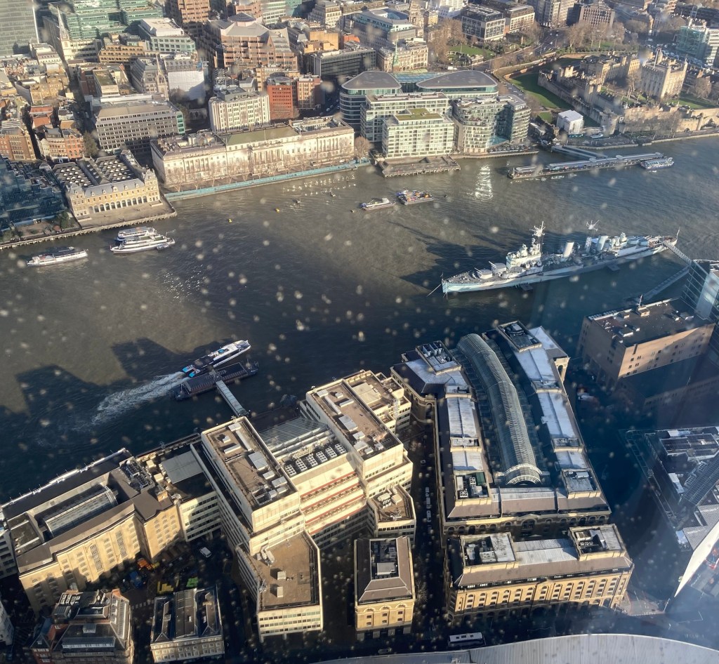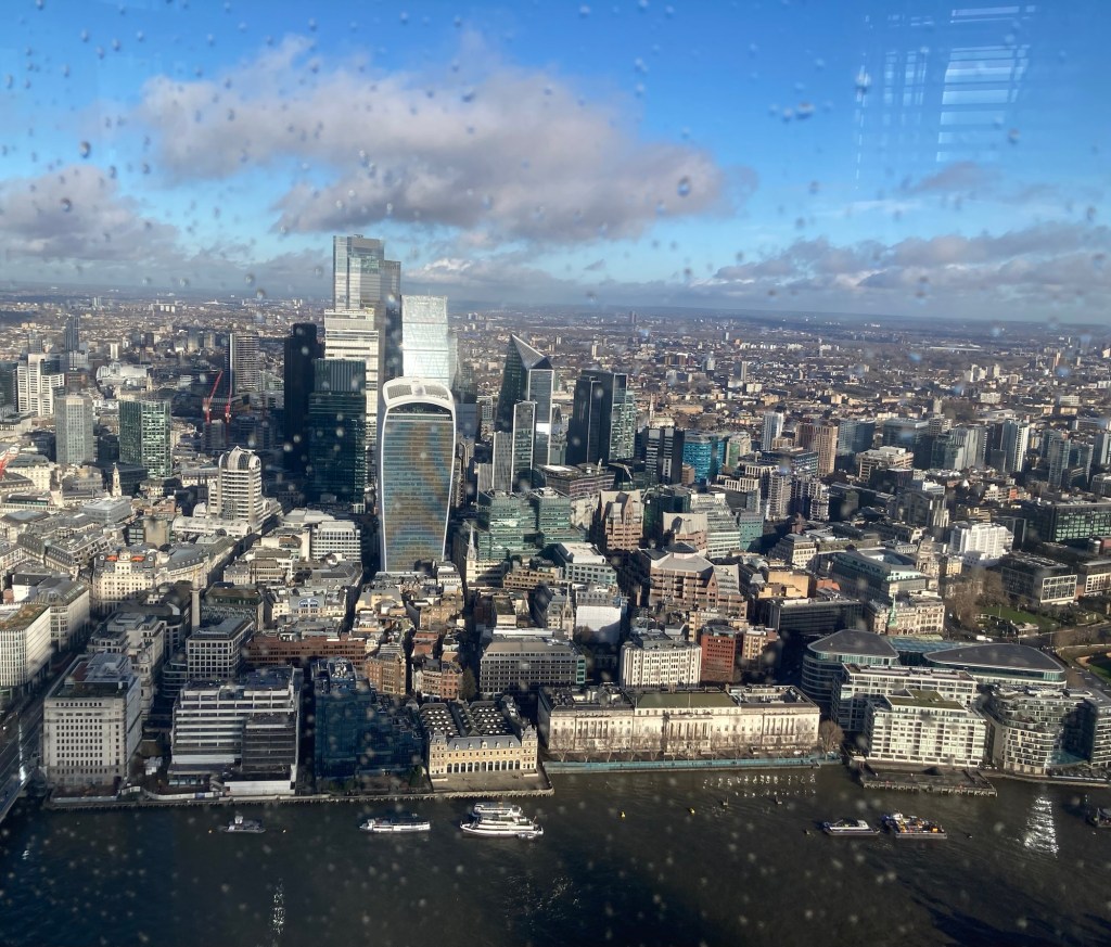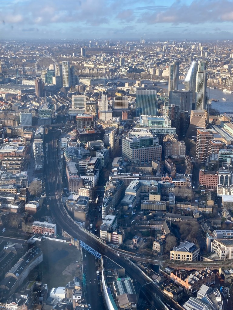 From the Peter Layton Gallery, we walked to The Shard to get some great views of London. The Shard is a 72 story mixed-use development super tall pyramid-shaped skyscraper right across from the London Bridge transit station. It opened in February 2013. For a minimum of 19 pounds (US $25.43), you can access the public viewing decks on floors 68 and 69.