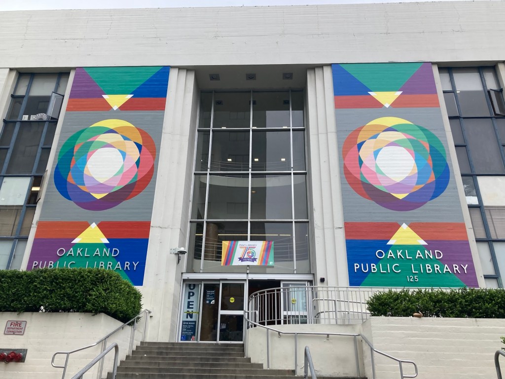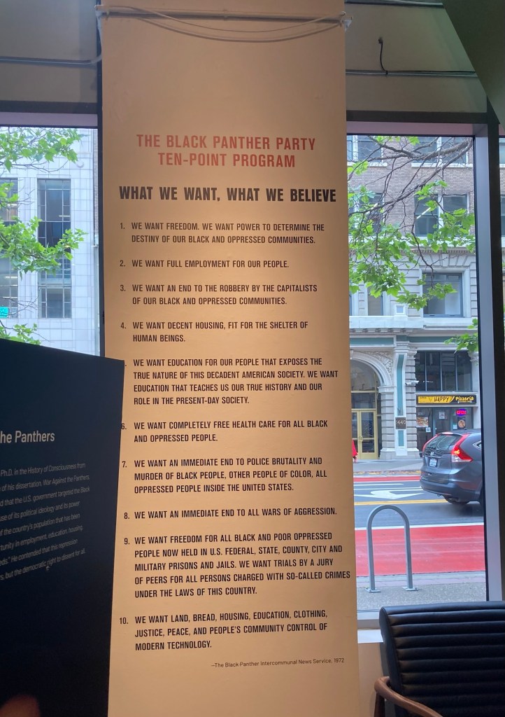 Yesterday and today I walked into downtown Oakland, which consists of crossing under highway 980 from the West Oakland area where the housesit is. Downtown Oakland also seems a little rough, but it has some nice buildings and a couple of museums. As always, I visited the central library (not architecturally interesting) and went into the free and very small Black Panther Party Museum. I learned a few things but was hoping for more information on the origin of the party. Some photos below from my outings (along with another of the dogs). Looking forward to having Bob arrive Friday evening.