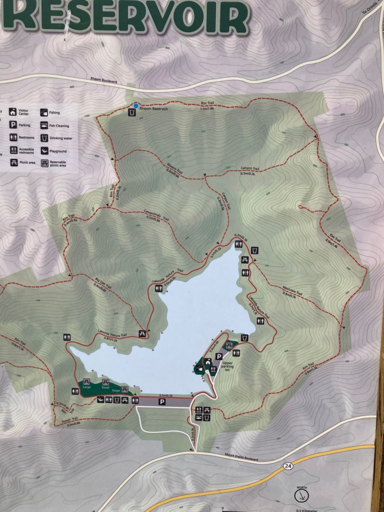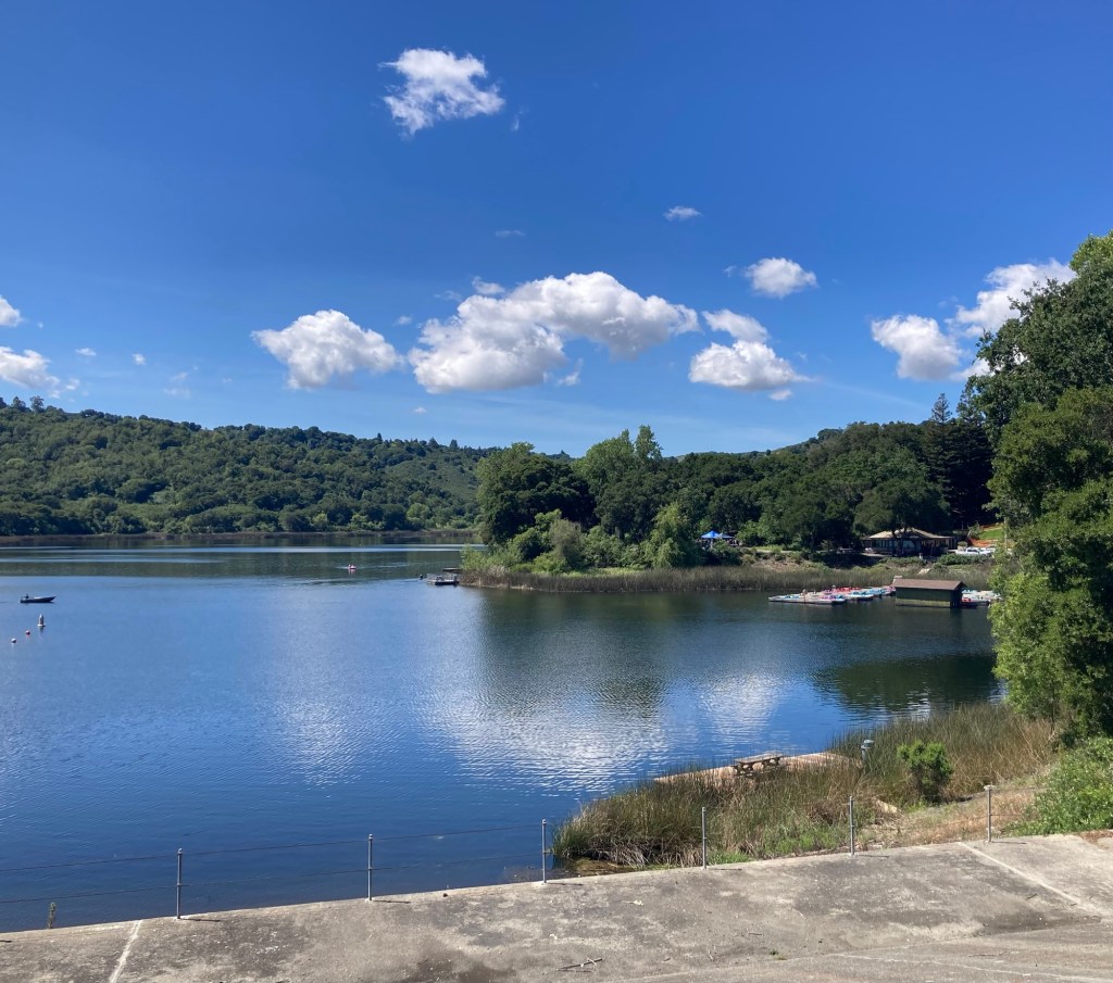 While Bob was looking around town, especially the grocery stores, I walked about 25 minutes to the Lafayette Reservoir and then walked the lovely, paved, almost 3 mile trail around the reservoir. It was a popular spot for walkers, dog walkers, and moms pushing strollers.