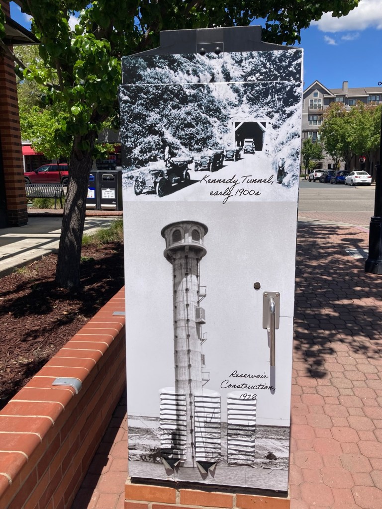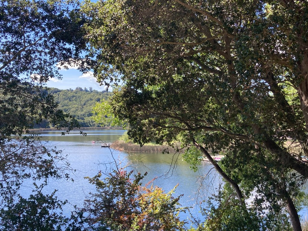 Today is bright and about as warm as it’s been for a while, so we headed north (away from downtown Oakland and San Francisco) two stops on the BART yellow line to the lovely community of Lafayette. It is a suburban city of about 25,000 on the other side of the Berkeley Hills from Oakland. We spent a good couple of hours or so exploring its pretty downtown and walking around the Lafayette Reservoir.