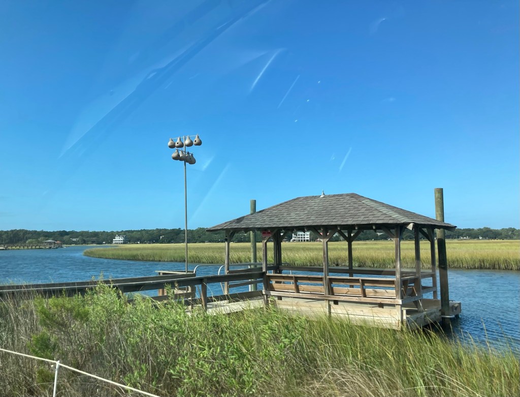 Today, we drove about 16 miles south to Pawleys Island, another part of the 60 mile grand strand along the coast. We drove over a causeway to get to the Island, which is only about 3 miles long between an inter coastal waterway and the Atlantic Ocean. It is one of the oldest resort areas on the East Coast.