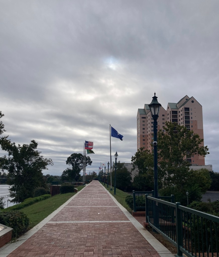 An overlook along the RiverwalkThe Morris Museum of Art, which is right next door to the Marriott Another pretty view of the Savannah RiverIn keeping with the education component of the trail, this is an old weather observation station. The average annual temperature for Augusta is 63 degrees F with 72% humidity.Augusta University is a 4 year public research university and academic medical center. It has a current enrollment of about 9,000 students.The Riverwalk