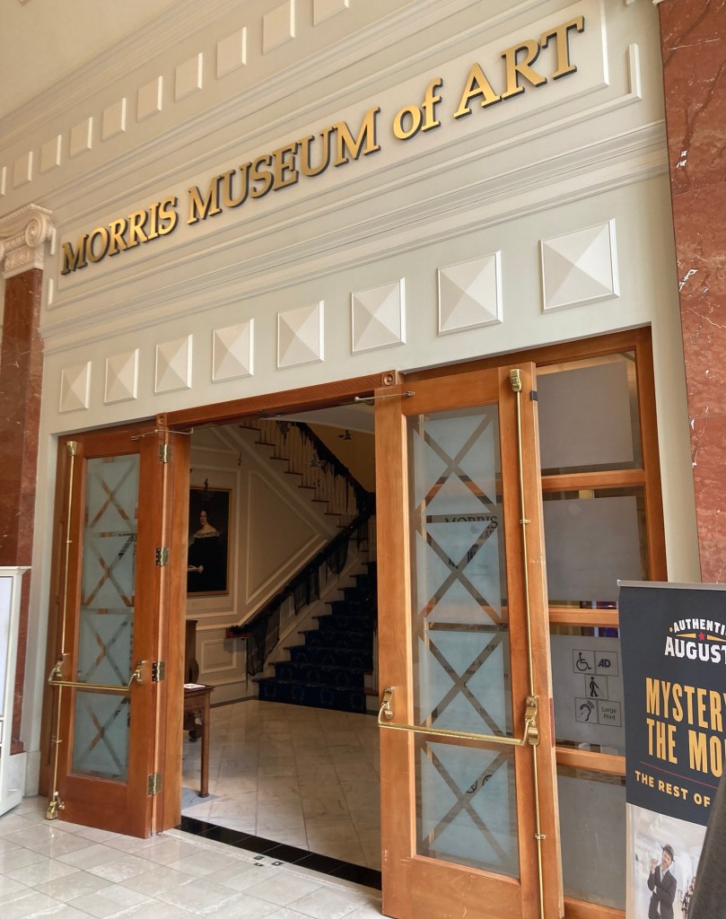 After stopping at a bakery that we had see from our hotel window (very dark with little selection so no purchases), Bob and I headed to the other side of the Marriott to go across the street to the Morris Museum of Art that we had passed on the Riverwalk yesterday.