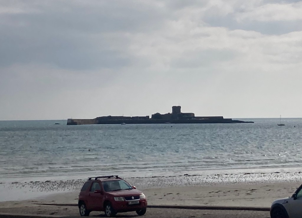 After walking down near the lighthouse but not crossing over to it as not low tide, we caught bus 22 back to the Cristina Hotel near the Cobiere Phare Hotel and German Naval Tower.