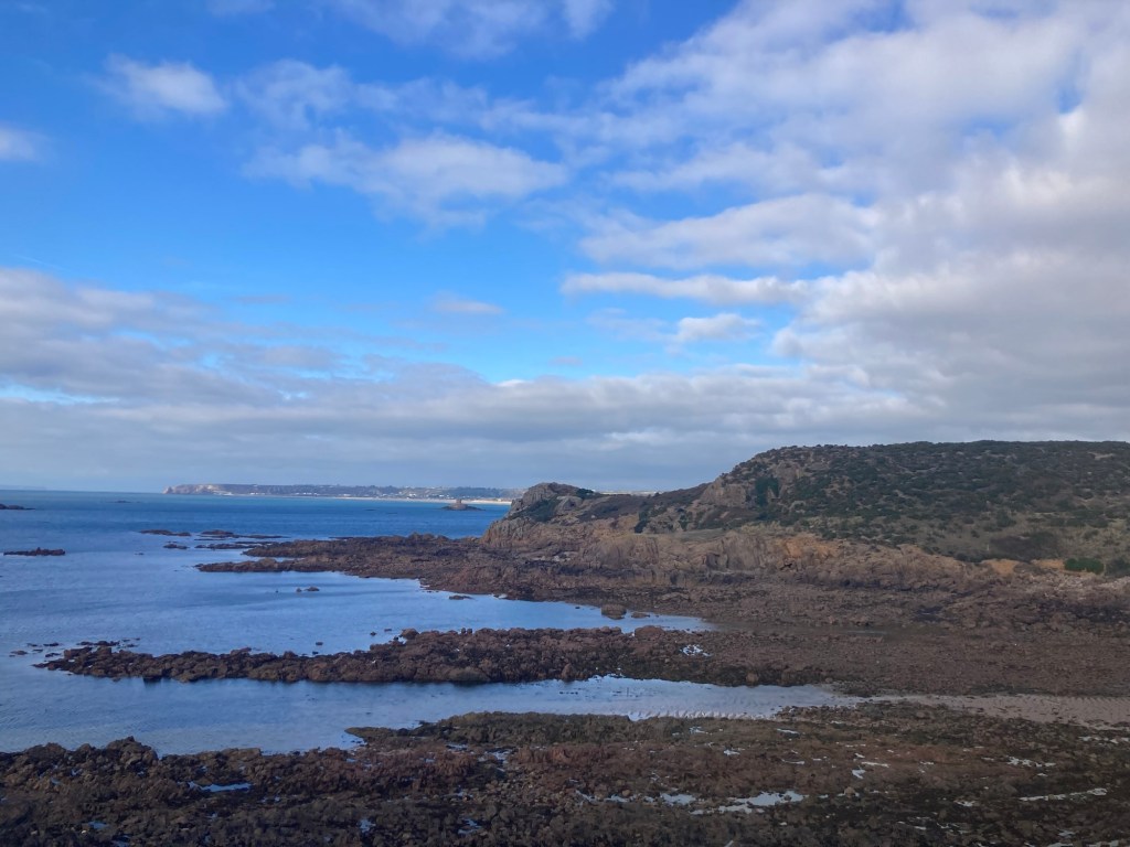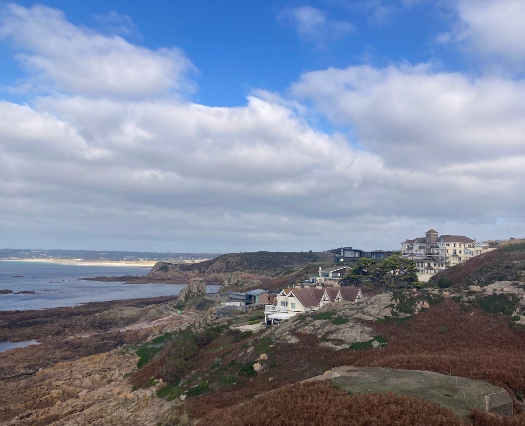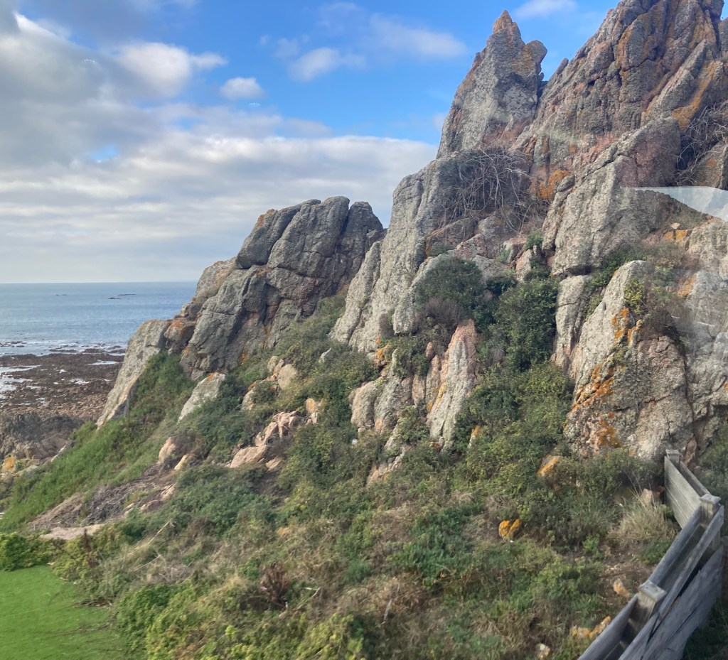Last night Bob and I had a great walkthrough and home cooked dinner with our homeowners after they picked us up at our hotel, but before that we had a lovely walk to a lighthouse on the southwest coast of Jersey.