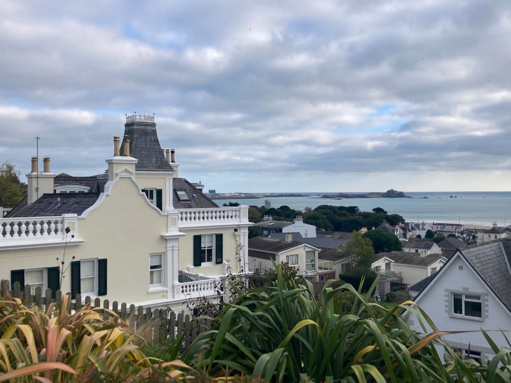 View of hotel and tower from closer to lighthouse View from our seats on the top of a double decker busDittoThe roads are wider here than in Guernsey, but you can see how close we got to the bus going in the opposite direction View as we walked back up to the hotelBack at the hotel, which we highly recommend for views and service