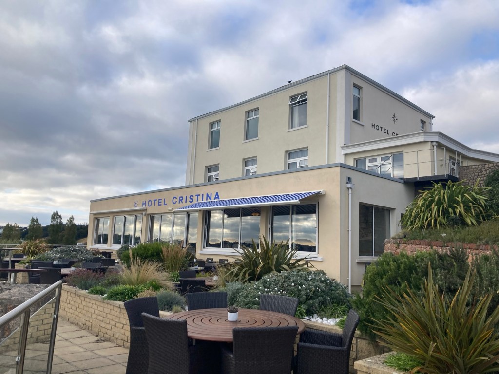 We arrived into Jersey, where we were immediately welcomed on WhatsApp by our homeowner, and were into our hotel,The Hotel Cristina, by 6:45. This is a beautiful hotel with great views of Jersey and St. Aubin’s Bay. We had a quick drink in the bar last night while we looked over all the tourist info we picked up and a great free breakfast in the restaurant this morning.