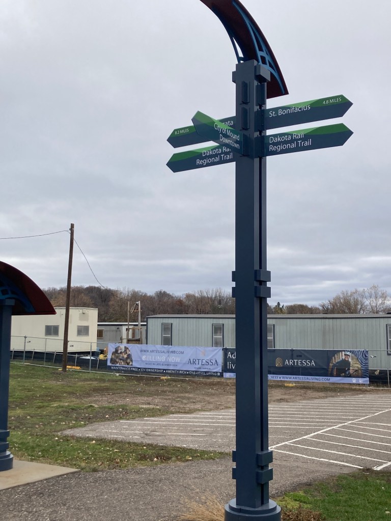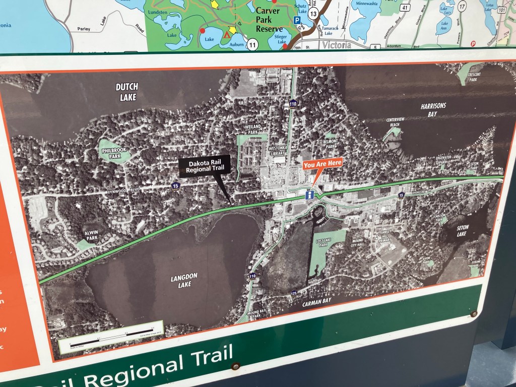 Yesterday, we drove to the small community of Mound, Minnesota, to walk another part of the Dakota Regional Rail Trail and see another part of this lovely, lake-filled area. Mound has one of the few trailheads with parking along the trail. Mound is a city in western Hennepin County (so closer to the Twin Cities). It’s about 18 miles from Waconia, has a population of about 9,000, and Wikipedia tells me that is also home of the Tonka truck, named after Lake Minnetonka, one of many lakes surrounding Mound.