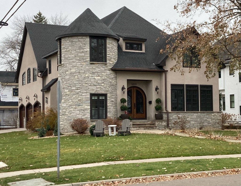 Lake Harvey in the neighborhood just across the highway from usThis arrangement was in front of one of the many, many gorgeous big homes in the area.Arden Park is an 18 acres park with trails, a creek, playgrounds, and an ice skating rink.Minnehaha Creek flowing through Arden ParkA $1.8 million house (according to Zillow). Just an example of the lovely homes, too many to photograph.Multi-unit housing in the city center with ground level retail Another festive arrangement The Edina Mann Theatre is a movie theatre.Another arrangement in the city centerA fully decked out treeOne of the main shopping areasAnother arrangement, this time out of a French bread store